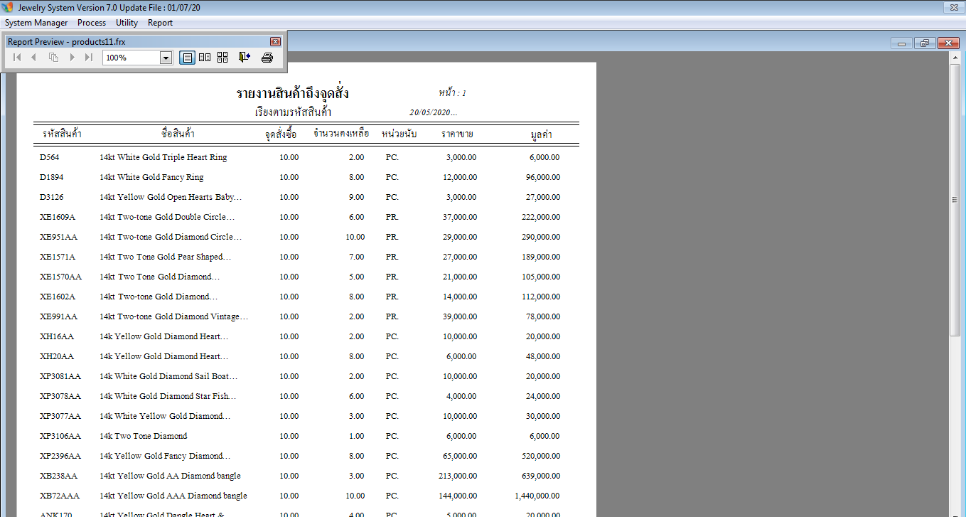 รายงานทะเบียนสินค้าทั้งหมด