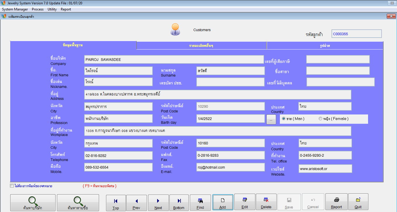 รายงานทะเบียนลูกค้าทั้งหมด