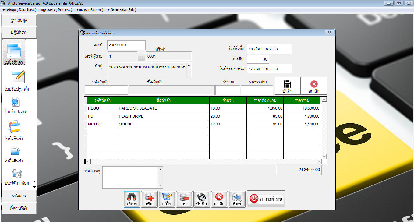 - มีระบบทำใบเสนอราคา / ระบบการซื้อสินค้า / การปรับปรุงยอดสินค้าเพิ่ม-ลด